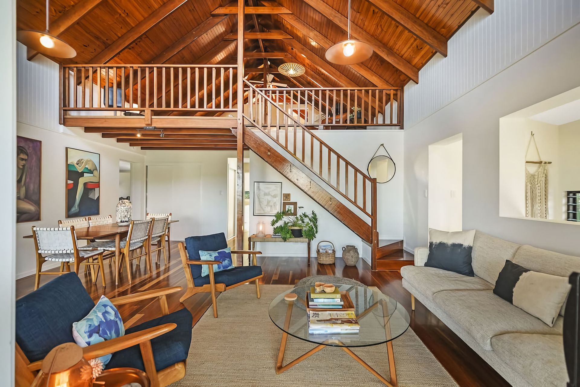 The modern kitchen is an entertainers delight with lots of kitchen space, servery window onto the deck and well stocked. The master bedroom with walk in robe and ensuite are also on this level along with a comfortable Media room with 70 inch Smart TV (with Netflix) and surround sound. The beautiful pool (heated in the winter months) is private and is located on the right hand side of the house, perfect for your morning swim before heading down to the beach. Enjoy coffee and breakfast in one of the beautiful cafes a short 5 minute walk away or walk down in the evening to dine at one of the award winning restaurants.